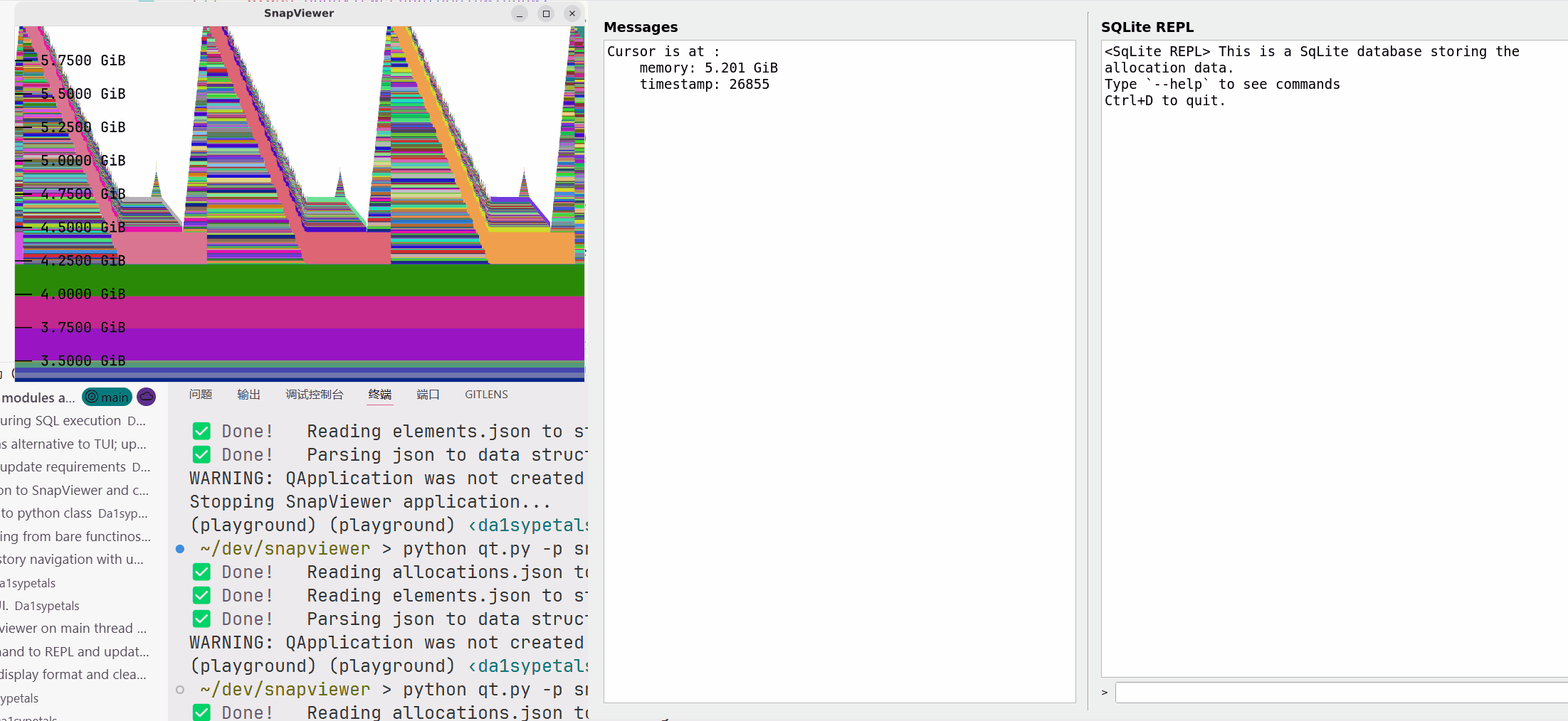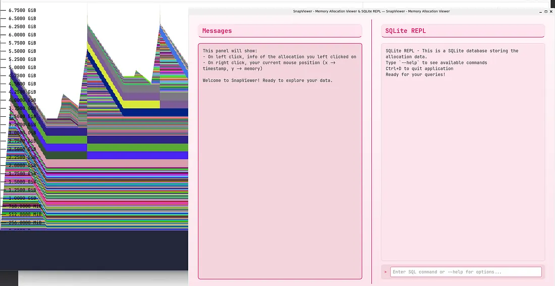 For SnapViewer, my memory allocation viewer, I needed an integrated UI that could display allocation details on click and feature a REPL for SQL queries against a SQLite database. This post details my journey, the hurdles I faced, and the solutions I found, primarily focusing on a Rust backend and Python UI.