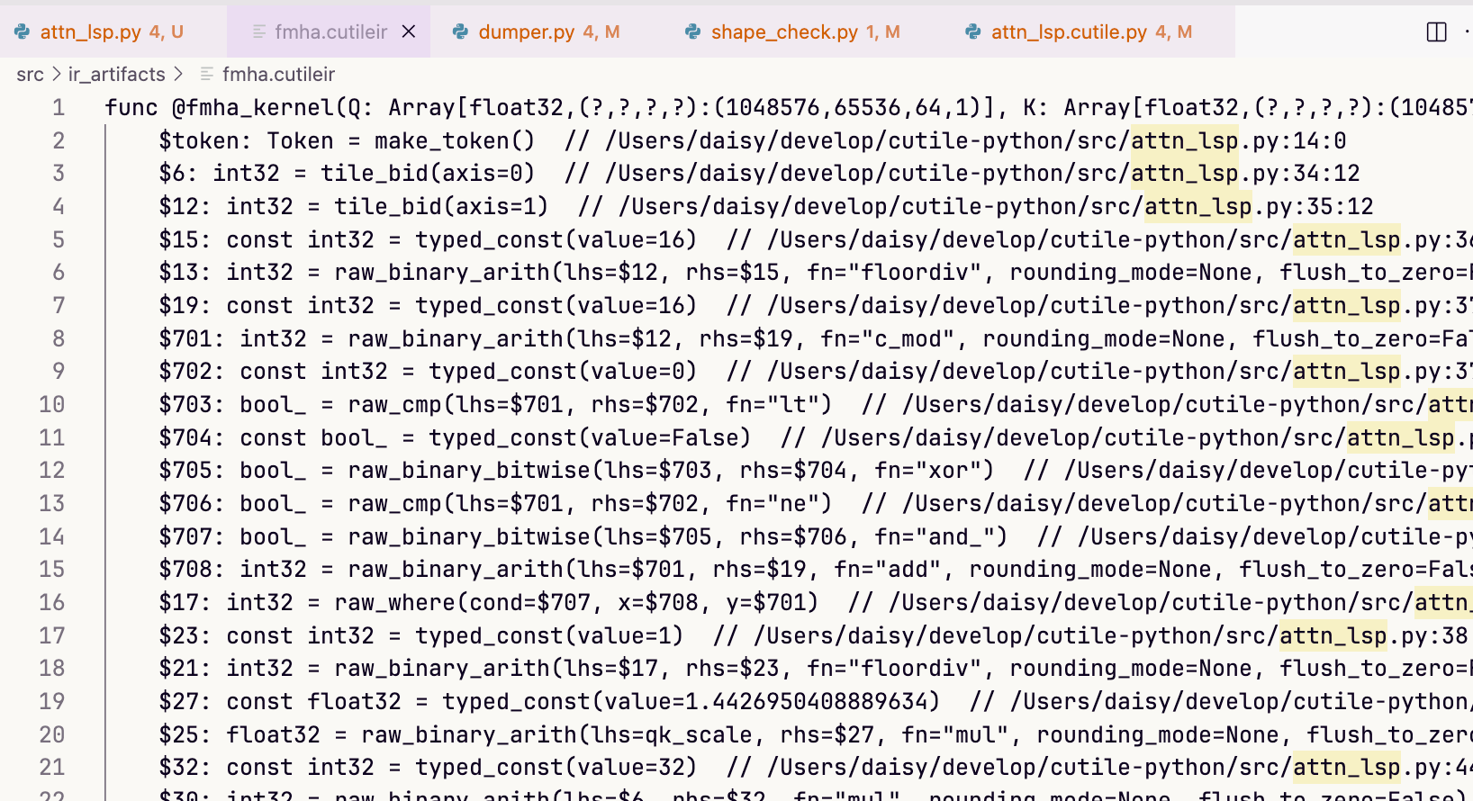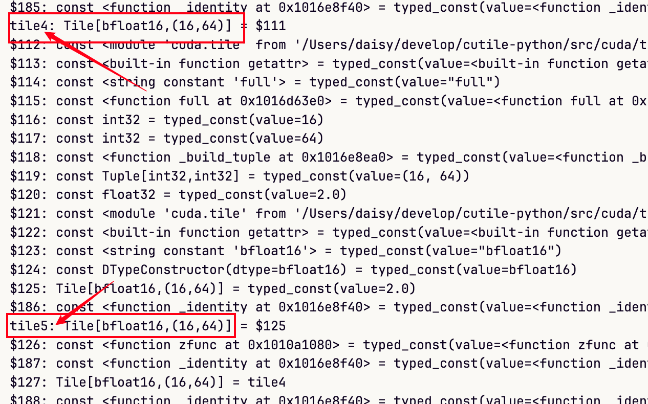 但是有了cutile-python这个python端,下降到mlir之前的中间代码还是可以了解一下的。